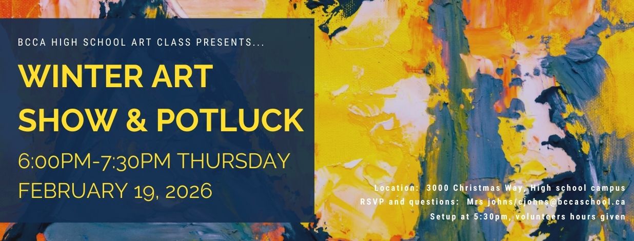 Please reach out if you have any questions at our art teacher, Carmen Johns, at cjohns@bccaschool.ca.